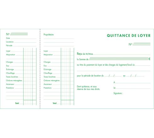 CARNET À SOUCHE QUITTANCES DE LOYER 50 FEUILLETS - FORMAT HORIZONTAL DE LA QUITTANCE 13X18,5 CM