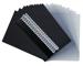 Ce kit est composé de 5 baguettes spiralées 6mm noires, 5 baguettes spiralées 8mm blanches, 10 couvertures PVC, 10 couvertures carte grain cuir noire pour le dos du dossier.