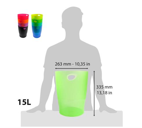 Cette corbeille à papier d'une capacité de 15 litres est très pratique. Ses poignées sont intégrées pour un transport et un vidage aisés et son intérieur est facilement nettoyable.