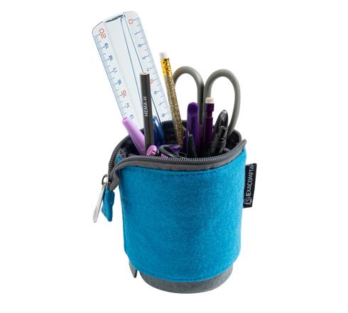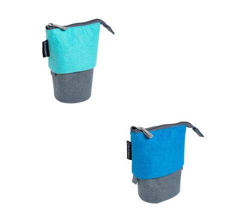 Polyvalente, la trousse Teksto peut s'utiliser à plat comme un fourre-tout traditionnel mais également debout en position pot à crayon grâce à son rabat qui se glisse vers le bas et permet à l'ensemble de se maintenir en position verticale.