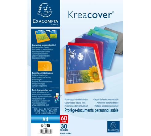 PROTÈGE-DOCUMENTS EN POLYPROPYLÈNE SEMI RIGIDE KREACOVER® OPAQUE 60 VUES - A4 - COULEURS ASSORTIES