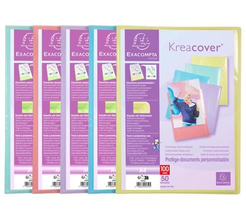 PROTÈGE-DOCUMENTS EN POLYPROPYLÈNE KREACOVER PASTEL 100 VUES - A4 - COULEURS ASSORTIES