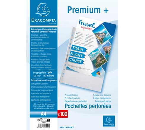 SACHET DE 100 POCHETTES PERFORÉES POLYPROPYLÈNE LISSE PREMIUM - A4 - CRISTAL
