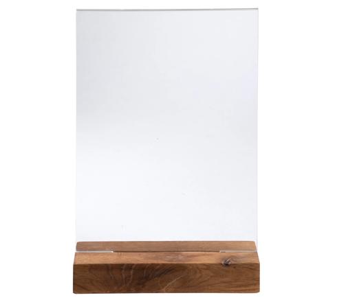 PORTE-VISUEL AVEC SOCLE EN BOIS VERTICAL A5 - CRISTAL