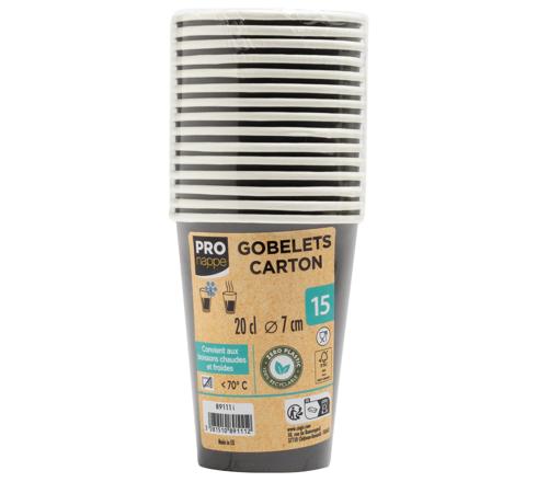 Le paquet comprend 15 gobelets de 20 cl en carton.