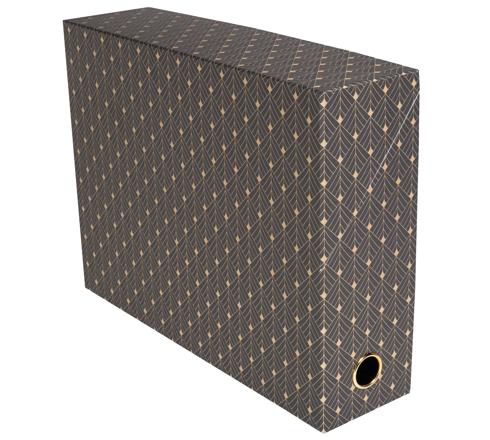 La boîte de transfert en dos de 90mm est un incontournable du home office ou de l'archivage en entreprise. Avec ce papier raffiné, et son oeillet de préhension or, c'est aussi un bel objet qui trouve sa place dans les armoires pro ou perso.