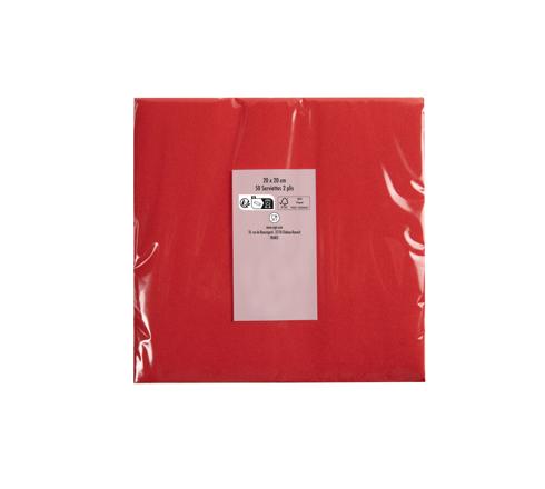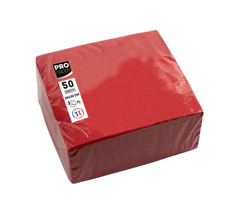 PAQUET DE 50 SERVIETTES COCKTAIL MICRO-GAUFRÉES OUATE 2 PLIS - 20X20 CM - ROUGE