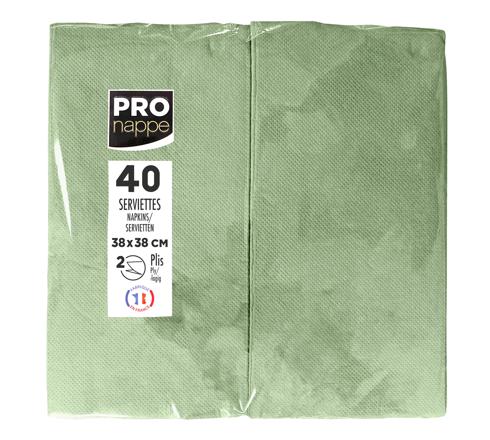 PAQUET DE 40 SERVIETTES MICRO GAUFRÉES OUATE 2 PLIS - PLIÉES 1/8 - VERT OLIVE - NOUVEAUTÉ