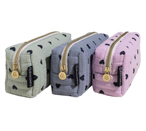 EXACOMPTA HEARTS RECTANGLE PENCIL CASE, COTTON - ASSORTED COLOURS - NEW