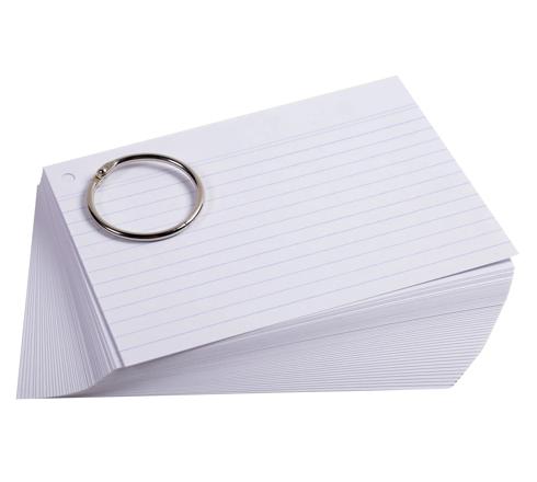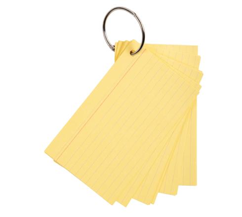 PAQUET DE 50 FLASHCARDS SOUS FILM + ANNEAU - BRISTOL LIGNÉ PERFORÉ - FORMAT A6 - COULEURS ASSORTIES