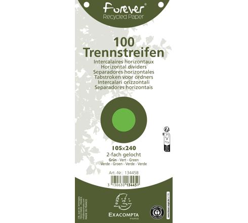 PAQUET 100 FICHES INTERCALAIRES HORIZONTALES UNIES PERFORÉES FOREVER - 105X240MM - VERT