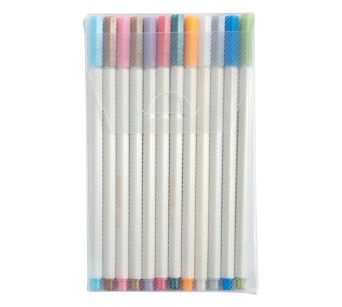 12 feutres de couleur à encre métallique sépcialement conçus pour l'écriture sur papier noir. Deux planches de stickers aux motifs c lassiques couleurs pastel et deux planches de stickers originaux et tendance couleur or, avec au total 300 stickers.
