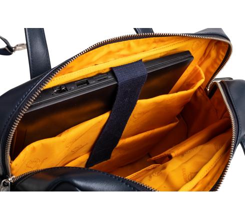 A l'intérieur, le compartiment principal est équipé de 2 grandes poches matelassées, spécialement conçues pour protéger un ordinateur et une tablette, ainsi que de 2 petites poches pour un smartphone ou autres accessoires. Il possède également un emplacement pour maintenir un parapluie ou une bouteille.
