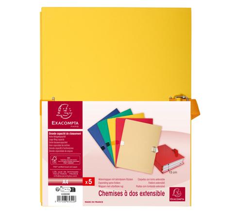 CHEMISE DOS EXTENSIBLE PAPIER 24X32CM - FILMÉE PAR 5 - JAUNE