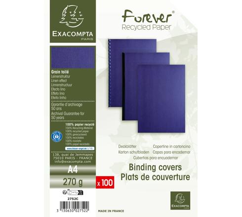 PAQUET DE 100 COUVERTURES GRAIN TOILÉ POUR RELIURE A4 - BLEU FONCÉ