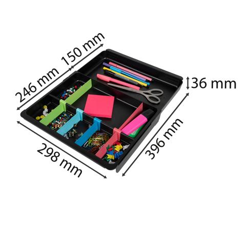 Il est modulable grâce à 4 ailettes amovibles ce qui laisse le choix entre 3 grands compartiments et jusqu'à 9 petits.