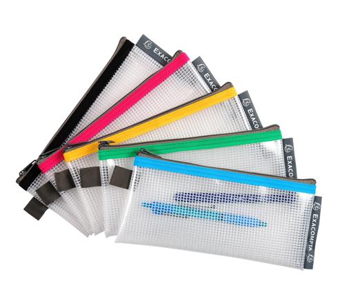 La pochette à fermeture éclair d'Exacompta est composée en plastique EVA, un matériau courant dans l'emballage, reconnu pour sa résistance et à la fois sa souplesse, difficile à déchirer, facile à transporter.