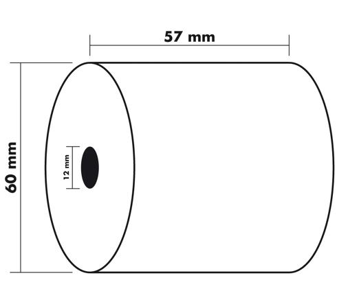 BOBINE POUR MACHINE À CALCULER ET CAISSES 57X60 MM - 1 PLI OFFSET EXTRA- BLANC 60G/M2. - BLANC