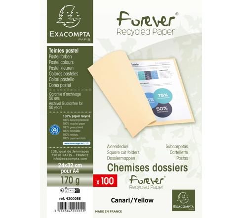 PAQUET DE 100 CHEMISES FOREVER® 170 100% RECYCLÉ - 24X32CM - JAUNE