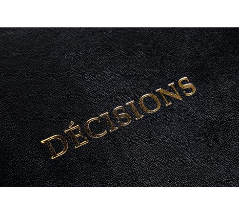 La reliure Exacompta est composée d'un classeur rembordé plastique, 4 anneaux en D en 3ème de couverture (ouverture simultanée des 4 anneaux), titre imprimé en doré sur la couverture et au dos du classeur. Elle est équipée d'une recharge de 100 feuilles vierges et foliotées, avec page de garde Décisions personnalisable + 2 encarts neutres.