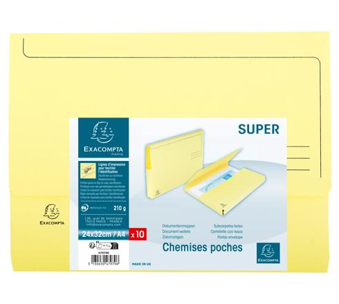 PAQUET DE 10 CHEMISES POCHE SUPER 210 - 24,5X32,5CM - CANARI