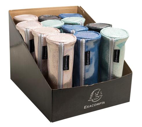 Forme ronde, peu encombrante, grande capacité, adaptée au scolaire, la trousse Glitter peut accueillir une règle double décimètre et de nombreuses fournitures.