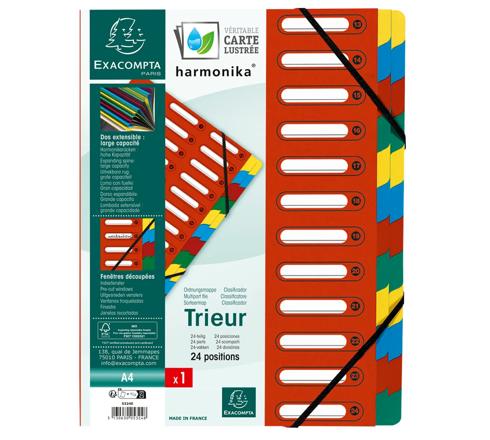 TRIEUR HARMONIKA® À FENÊTRES AVEC ÉLASTIQUES VÉRITABLE CARTE LUSTRÉE 24 COMPARTIMENTS - COULEURS ASSORTIES