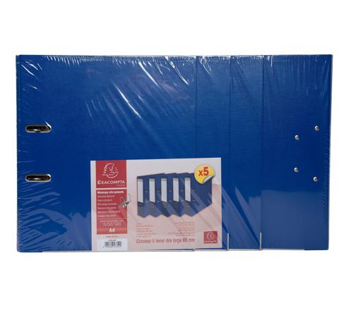 LOT DE 5 CLASSEURS À LEVIER INTÉRIEUR ET EXTÉRIEUR EN POLYPROPYLÈNE - DOS DE 80MM - MÉCANIQUE PREM'TOUCH - A4 - BLEU FONCÉ