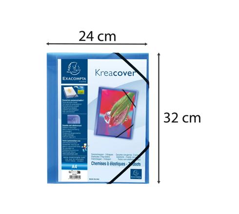 CHEMISE À ÉLASTIQUES 3 RABATS POLYPROPYLÈNE TRANSLUCIDE KREA COVER - A4 - BLEU