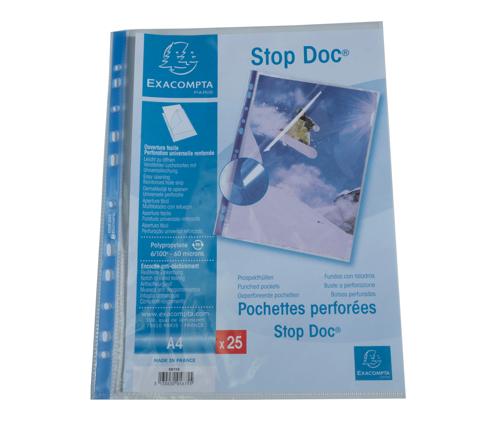 SACHET DE 25 POCHETTES PERFORÉES STOP DOC OUVERTURE EN COIN - POLYPROPYLÈNE LISSE 6/100E - A4 - CRISTAL