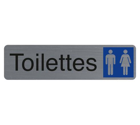 PLAQUE ADHÉSIVE IMITATION ALUMINIUM TOILETTES DAME / HOMME 16,5X4,4 CM - GRIS