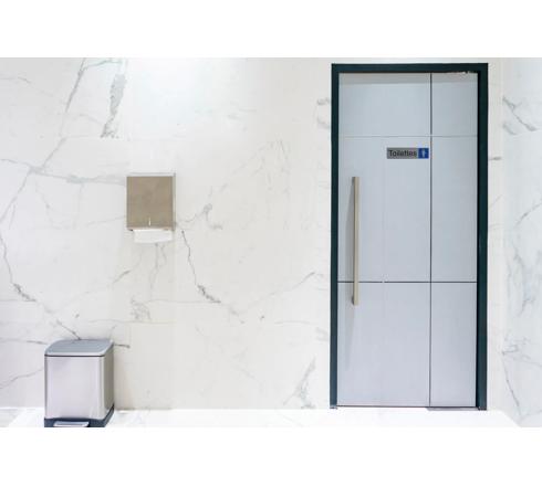 PLAQUE ADHÉSIVE IMITATION ALUMINIUM TOILETTES DAME 16,5X4,4 CM - GRIS