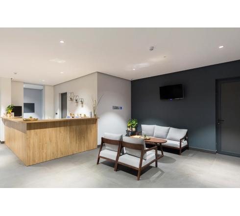 PLAQUE ADHÉSIVE IMITATION ALUMINIUM SALLE D'ATTENTE 16,5X4,4 CM - GRIS