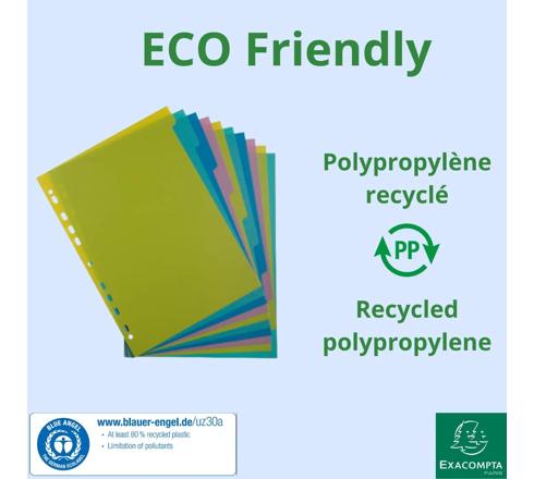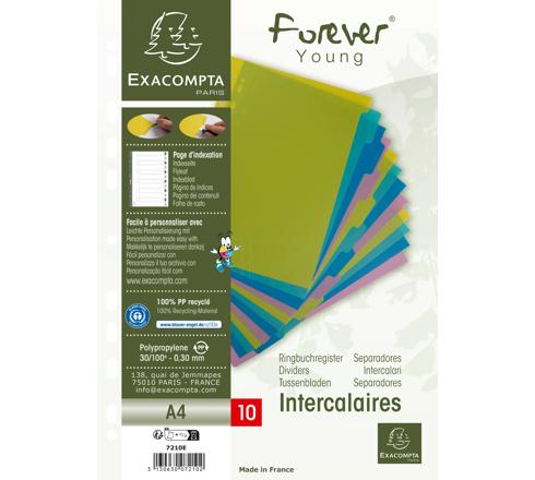 INTERCALAIRES POLYPROPYLÈNE RECYCLÉ FOREVER YOUNG 10 POSITIONS - A4 - COULEURS ASSORTIES