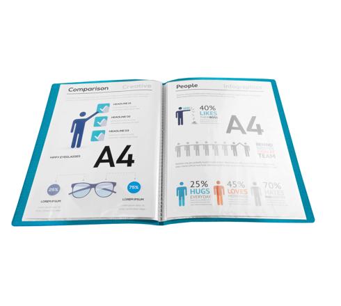 PROTÈGE-DOCUMENTS COUVERTURE CARTE SEMI RIGIDE TEKSTO 40 VUES - A4 - COULEURS ASSORTIES