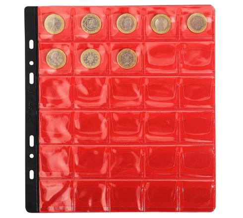 Chaque feuille plastique est complétée d'un intercalaire en carte rouge permettant de faire ressortir les visuels des pièces présentées.