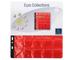 Chaque feuille plastique est complétée d'un intercalaire en carte rouge permettant de faire ressortir les visuels des pièces présentées.