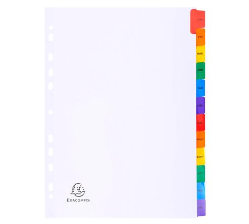 REGISTER NUMERISCH BEDRUCKT, WEISSER KARTON 160G/QM, 12 TABEN, JAN.-DEZ., DIN A4 - WEISS