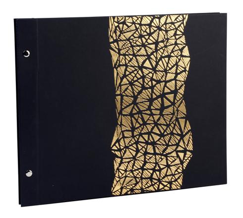 Das Schraubenalbum der Serie Aramy ist pure Eleganz. Goldene Akzente auf scharzem Hintergrund: für alle, die dezente Eleganz lieben. Ideal für Hochzeitsbilder, Bilder von Feiern, Jubiläen u.v.m.