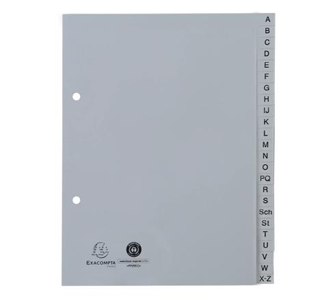 REGISTER A5 AUS RECYCLING-PP GRAU 120µ MIT BEDRUCKTEN TABEN A-Z (INKL. SCH, ST), 24 POSITIONEN - GRAU