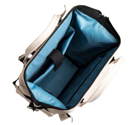 Der elegante Rucksack von Exacompta ist aus mattem PU-Material gefertigt und hat eine sehr weiche Haptik.