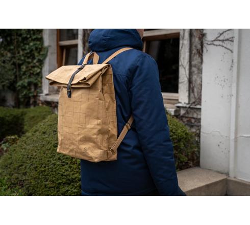 RUCKSACK 32X44X12CM AUS PAPIER IN LEDEROPTIK, SERIE ETERNECO - BRAUN GEOMETRISCHE MOTIVE
