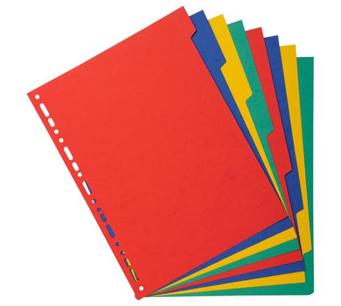Register aus Recyclingkarton 220g in lebendigen Farben. Für eine gute Übersicht und Sortiertung von Dokumenten in Ordner oder im Ringbuch.