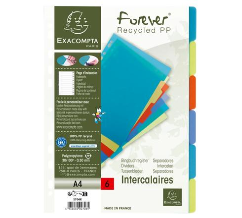 REGISTER AUS RECYCLING PP 300µ MIT 6 POSITIONEN FOREVER, FÜR FORMAT DIN A4 - FARBEN SORTIERT