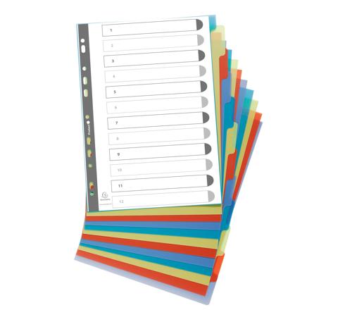 REGISTER AUS RECYCLING PP 300µ MIT 12 POSITIONEN FOREVER, FÜR FORMAT DIN A4 - FARBEN SORTIERT