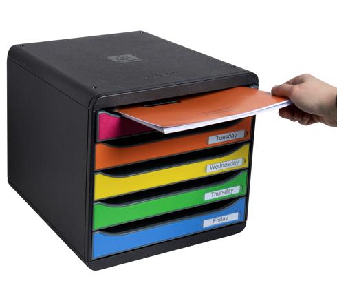 Die Schubladenbox BIG BOX PLUS von Exacompta verfügt über 5 Schubladen, in denen Sie Dokumente im Format A4 und A4+, Sammelmappen mit Gummizug 24x32cm oder großformatige Umschläge ablegen können. Sie eignet sich für den Einsatz im Büro, Home Office oder in der Schule.