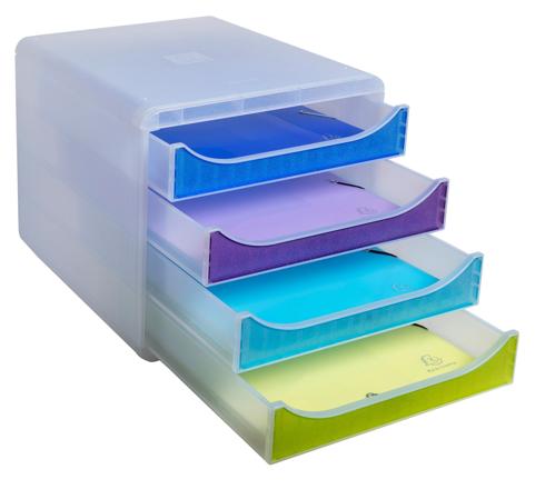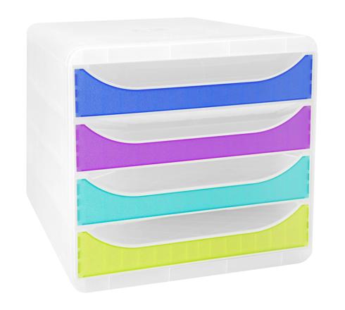 Die Schubladenbox Big Box Plus von Exacompta verfügt über 4 Schubladen, in denen Sie Dokumente im Format A4 und A4+, Sammelmappen mit Gummizug 24x32cm oder großformatige Umschläge ablegen können. Sie eignet sich für den Einsatz im Büro, Home Office oder in der Schule.