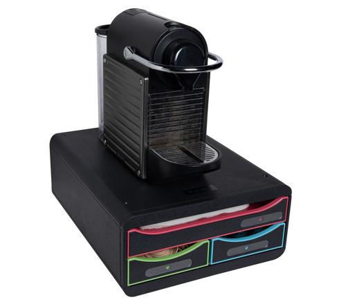 Sie ist stapelbar dank der 4 dafür vorgesehenen Aussparungen. Offene Laden, dank derer die Dokumente ohne Öffnen der Lade eingeschoben werden können.