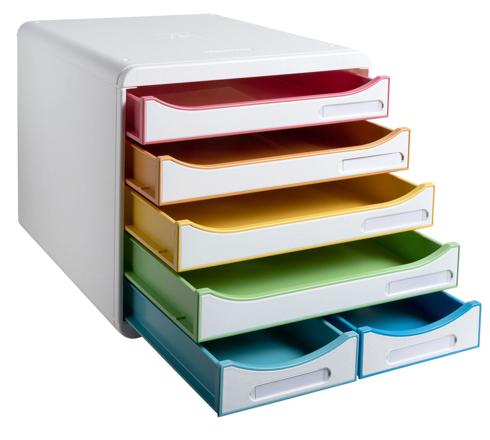 Das Ablagemodul Big Box Maxi besteht aus 6 Schubladen, 4 große und 2 kleine. In diesem können Sie Dokumente im Format A4 und A4+, Sa mmelmappen mit Gummizug 24x32cm, großformatige Umschläge, aber auch kleine Büroaccessoires wie Haftnotizzettel, Büroklammern, Schre ibutensilien oder auch Kaffeekapseln ablegen. Die Big Box Maxi eignet daher perfekt für den Einsatz im Büro, im Home Office oder in der Schule.