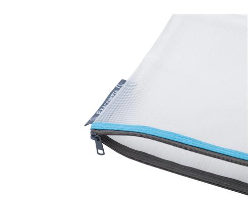 Der Kunststoff ist wasserundurchlässig, für einen größeren Schutz des Inhalts. Die Hülle kann so als Reiseaccessoire verwendet werden oder auch als praktisches Täschchen für Flüssigkeiten bei der Kontrolle am Flughafen.